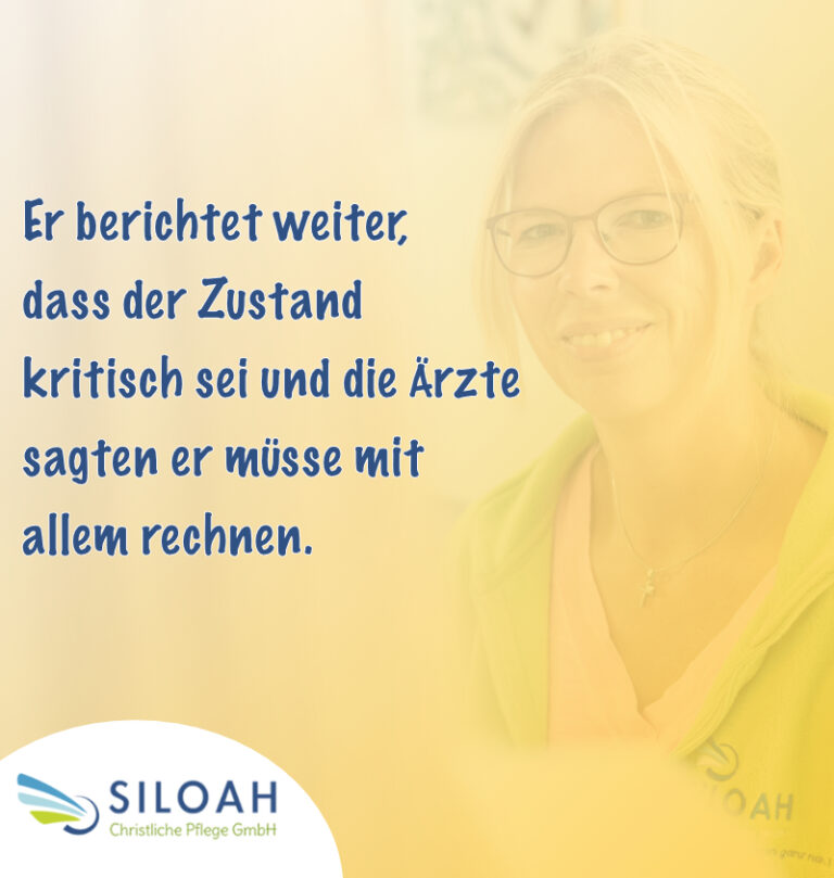 Unser Pflegeleitbild bei der Siloah – Christliche Pflege GmbH spiegelt unser tief verwurzeltes Engagement für qualitativ hochwertige, christlich geprägte Pflege wider. Es ist unser Anliegen, Menschen in jeder Lebensphase liebevoll und respektvoll zu begleiten, ihre Würde zu wahren und ihre individuellen Bedürfnisse bestmöglich zu erfüllen.